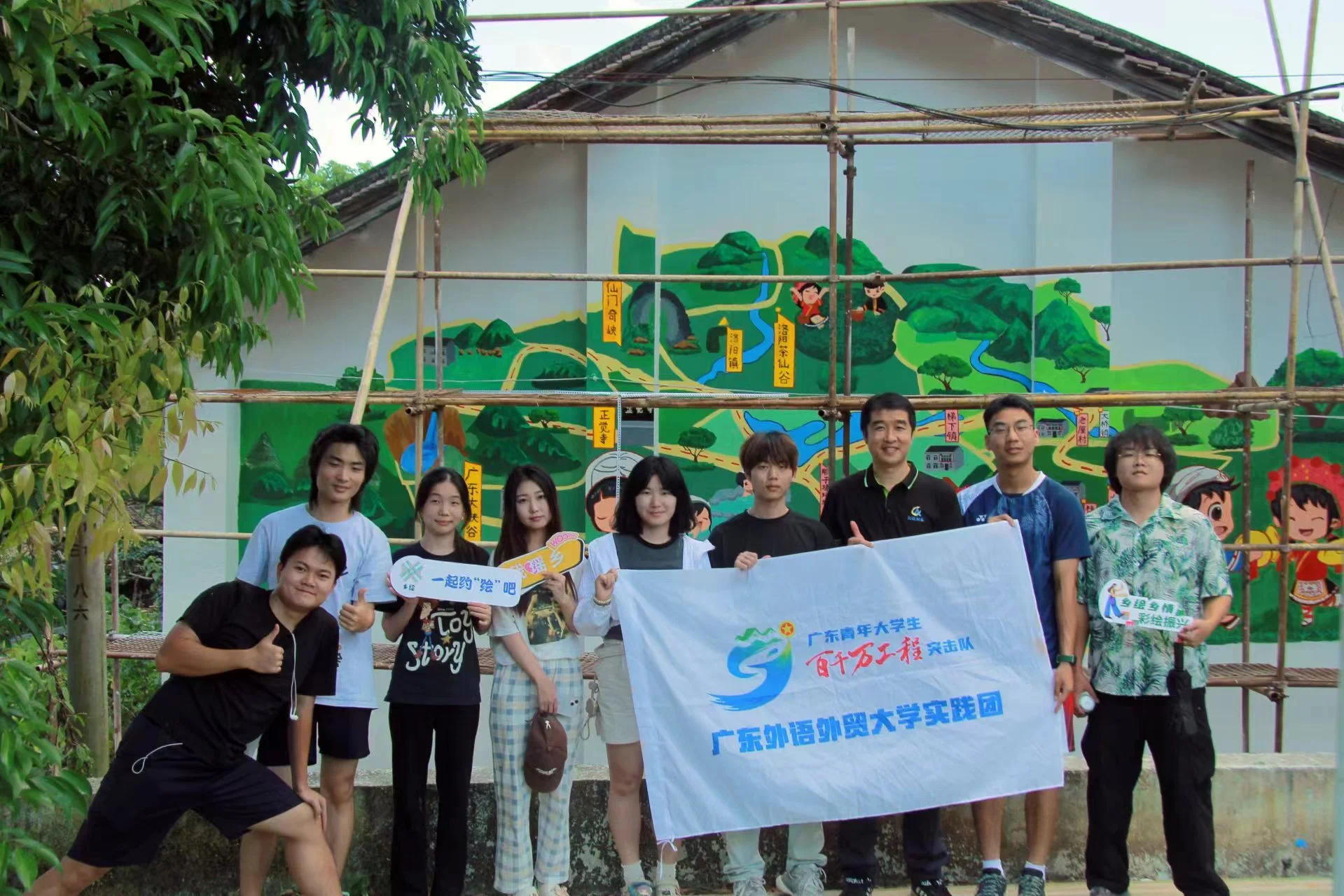 在韶关乳源瑶族自治县的葱郁山水间,一场由青年学子发起的乡村振兴实践正如火如荼地展开。广东外语外贸大学“乡绘”百千万工程突击队,以青春之名,以创意为翼,用绿美墙绘、绿色研学、设计造绿等形式多样的实际行动在广袤的乡村大地上描绘出一幅幅乡村振兴的宏伟蓝图,为绿美广东建设注入青春力量,生动诠释了新时代青年的责任与担当!