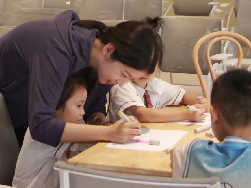 “这些哥哥姐姐们把墙面画的好漂亮啊!”