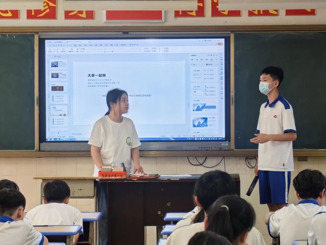 在汪老师的课堂上 同学正抒发己见
