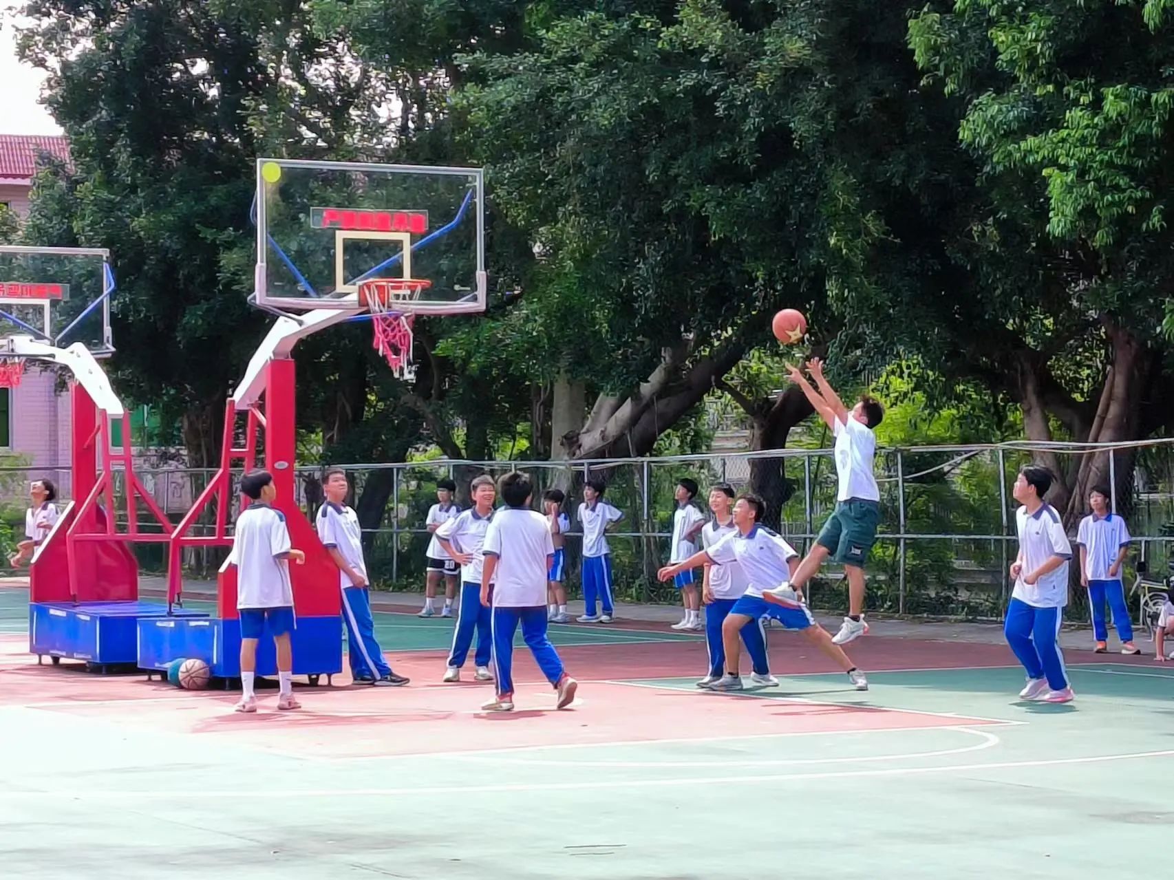 老师和同学们一同享受运动的乐趣