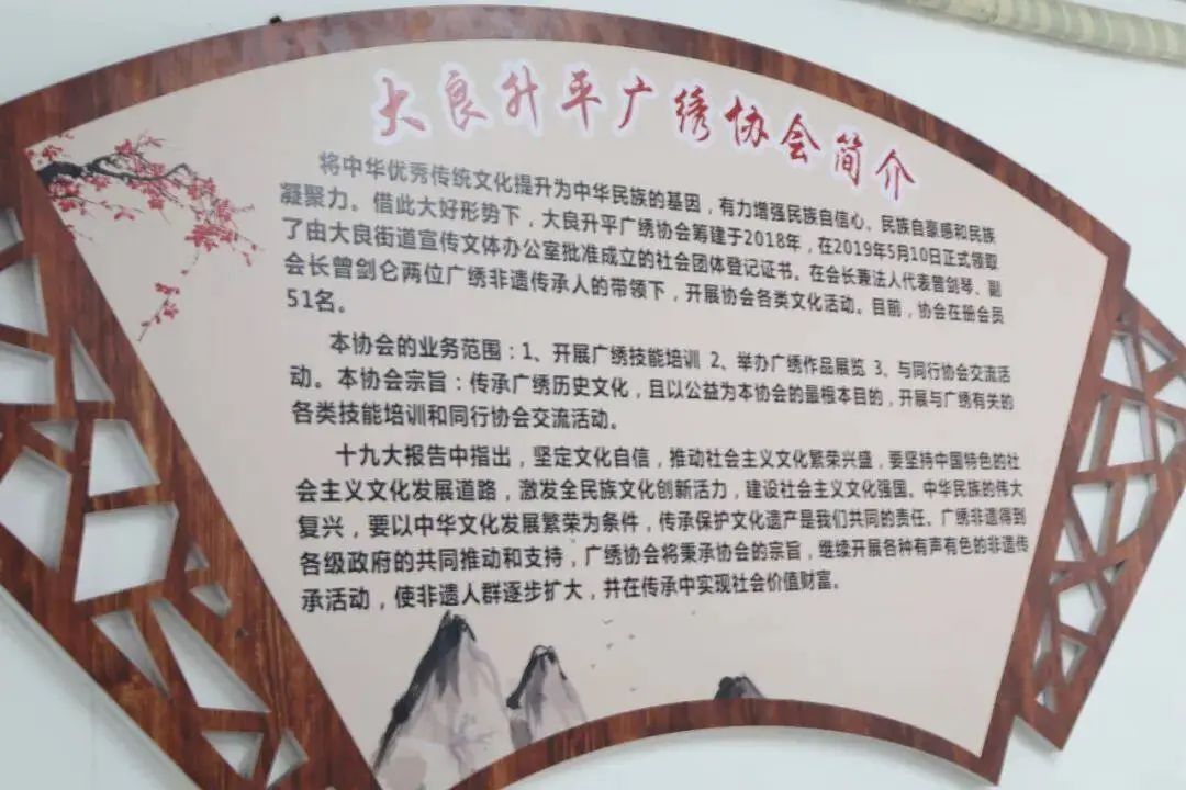 升平广绣协会积极响应党的二十大精神,推进文化自信自强,将终身教育与非遗文化传承相结合。通过社区教育和老年教育,协会为居民提供了丰富的学习机会,实现了文化传承与个人成长的双赢。社区内设立的非遗工坊,聘请了非遗传承人和专职人员,开展传统工艺技能培训。