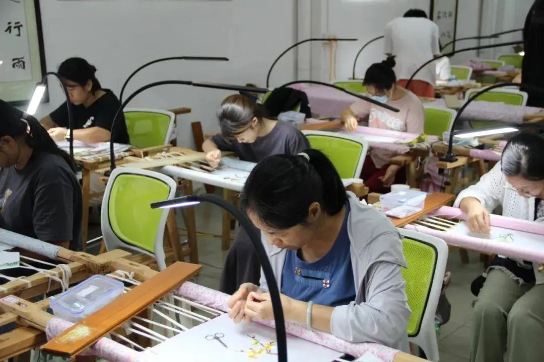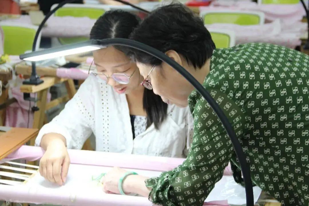 从2017年至今,她们已经教授了500多人,开设了十几个班,学员们的作品不仅用于销售,更在各类比赛中获得了140多个奖项。许多学员逐渐掌握这门技艺后,开始制作广绣手工文创,受到了许多消费者的喜爱,极大带动了女性就业。