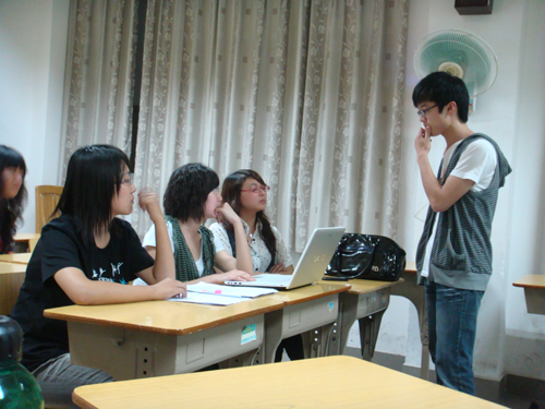 导演组采用剧本选段表演、即兴表演与问题回答三种方式,结合面试者对于戏剧本身的理解,对面试者进行严格而全面的选拔。面试者在即兴表演的环节中表现出很高的水平,09西B的邱婷婷更是以其惟妙惟肖而又不失幽默的表演赢得了导演组的掌声。外教Nuria也莅临指导,在语音与表现力等方面给出专业的评价。