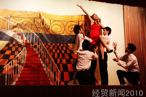 4月8日下午2点,国际经济贸易学院第十三届“Fantasy tour”英文戏剧大赛在南校区学生活动中心隆重上演。来自华工外国语学院的张慧明老师,广外英教学院的刘亮星老师,广外艺术学院的刘贝妮老师、何涛老师等担任本次大赛的评委。