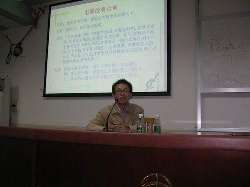 4月8日晚,财经学院第一届学术节经济电影展在北校区四教举行,出席本次电影展的嘉宾是财经学院09级财税系辅导员欧少彬老师,及财经学院的同学们,同时还有其他学院对经济话题感兴趣的同学。