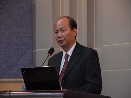 陈伟光首先代表学院师生对吴国华莅临财经学院讲学表示热烈的欢迎和感谢,并详细地向在座师生介绍了吴国华的简历,吴国华毕业于财政部财政科学研究所研究生部并获硕士学位,现任商务部政策研究室处长,兼任北京大学管理科学中心特聘研究员、商业经济与管理研究副所长,首都经济贸易大学经济学院兼职教授,《中国品牌发展报告》编辑部主任,中国国际贸易学会理事,中国国际税收研究会学术委员会委员等一系列称号,在热烈的掌声中,我院代表学校给吴国华颁发了广东外语外贸大学“课座教授”聘书,讲座正式开始。