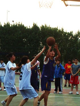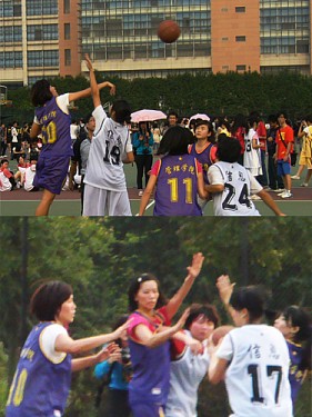 比赛前,双方队员均在场上练习。我院的队员在球场上分成两列,一列负责传球,另一列则负责接球并上篮。队员们练习时很投入,都尽量让自己全身舒展开。我院女子篮球队队长冯玲说:“这次是管院连续第三年在第一轮遇到信息学院的篮球队了,我们对其球风都有一定的了解,我们也做好了准备,打出自己的风格。”