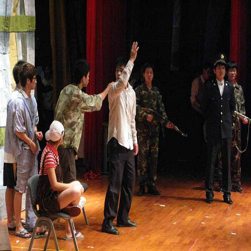 计算机三班的《Life is beautiful》(《美丽人生》)改编自同名电影,主要讲述了父爱的伟大与深沉。笨拙的犹太青年邂逅美丽的女主人公,在成功协助女主角逃婚后打动其芳心。纳粹士兵的突然出现却将他们短暂的幸福生活化为乌有,在儿子5岁生日的那天父子俩被抓进纳粹集中营,所有的观众无不为此而唏嘘叹气。男主角将集中营中的磨难虚拟为与儿子的一场游戏,但剧末的枪声未能挽留住爱子心切的伟大父亲,只有年幼孩子凄凉的喊声回荡。真情演绎再次感染现场观众。