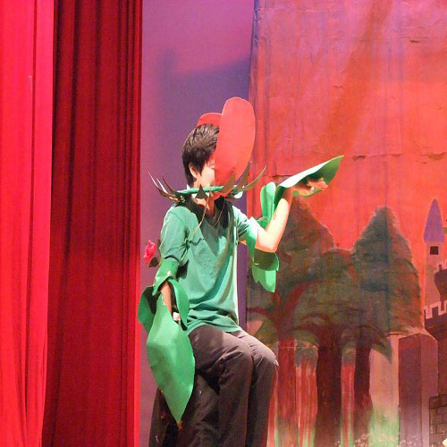 《Beauty and Beast》(《美女与野兽》)中一朵“妖艳”的玫瑰艳绝全场,凭借“风骚”投入的演出让观众无不拍案叫绝。作为戏剧的配角,“玫瑰”并无一句台词、无一次正面亮相,但其夸张大胆的表演技惊四座,甚至让两位主角也黯然失色。“美女”与“野兽”相爱时的浓情蜜意、“美女”离去时“野兽”心若死灰、“美女”发现“野兽”倒在地上的痛苦,“玫瑰”都表演得恰到好处又充满喜感,校话剧队队长林昌帅点评时也称赞道:“英戏的舞台上站着一个没有对白但永远最有戏的花”。