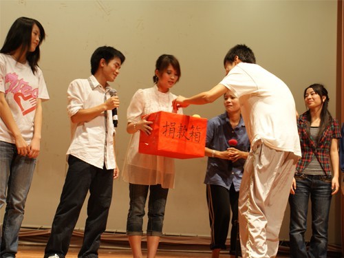 一曲由中西乐器共同演奏的《my heart will go on》,一首独唱却颇具台风的《你是我的眼》,犹如飞扬的乐韵,把“爱心传递”这一主题演绎得淋漓尽致。而在互动环节过后,歌兴未余的观众欣赏到了来自乐队Mr.Kid的狂热歌曲,台下欢呼声雷动。随后,由我院和经贸学院组合演唱的《改变自己》、《和你一样》则用细腻的歌词与手语表达出“为需要的人打造一片天空”的内涵,感动台下观众。