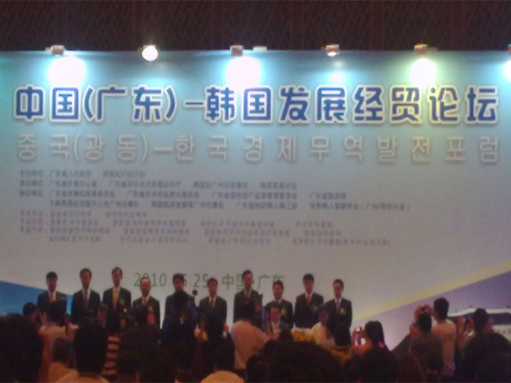 (文字/图片:禤莅昭编辑:徐绿)5月25日上午,广东省人民政府、韩国知识经济部于香格里拉大酒店举办了首届中国(广东)—韩国发展经贸论坛,我院韩语系08、09级学生参加了本次活动。本次论坛主题为“绿色发展,合作共赢”。广东省省长黄华华、广东省发改委副主任鲁修禄、广东省社科院院长梁桂全以及韩国知识经济部部长崔炅焕、韩国首尔大学教授郑永禄、韩国产业研究院成长动力产业研究中心所长张锡仁、韩国农业水产食品部企划调整室室长梁泰善等出席了论坛。