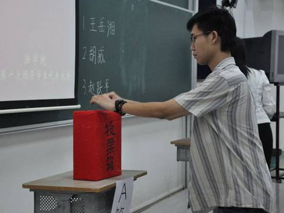 本网讯 6月17日晚上7点,法学院第十次团员学生代表大会在教学楼F215顺利召开。会议总结了团委学生会过去一年的工作情况,并在会上选举出新一任委员。校团委副书记谢秀兰、法学院党委副书记卢海清、法学院团委书记郭嫄、校学生会副秘书长、校学生会副主席、中山大学法学院主席及其他代表出席了本次大会。