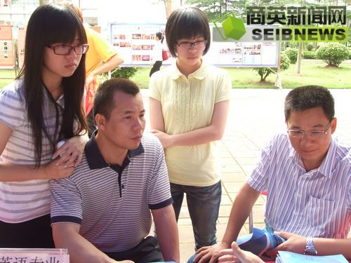 就业形势如何、分数线大概是多少、国际商务(精英班)如何招生——是咨询会上的三大热点问题。十几位老师就考生和家长关心的问题进行了耐心解答,并不失时机地介绍学校的办学特色、师资力量、校园文化等。商英学院谢应东书记接受记者采访时表示,学校在专业方面的改革创新引起了社会的重视。商英学院向来注重拓展学生的思维,培养学生的综合能力,而精英班的开展将更有利于培养跨文化交际能力和国际合作意识的高素质人才。