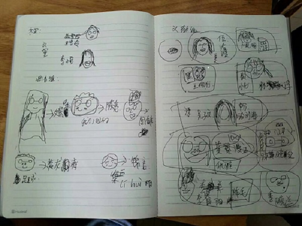 主持人是流萤盛夏服务队队长郑丹妮,文宣组三名队员负责全场秩序,剩下的队员则参与游戏,与学生们联络感情。一开始,是由组长们进行自我介绍,学生们都积极地参与互动,还有学生偷偷地记了笔记。组长自我介绍之后,便由组员自我介绍。服务队按照组别依次进行介绍,其间穿插着认人名的抢答游戏,学生们争先恐后地举手,生怕被忽视了。还有同学为了记住人名,在队员们自我介绍时画了他们的简笔肖像画,标注了特征,真是可爱又生动!为