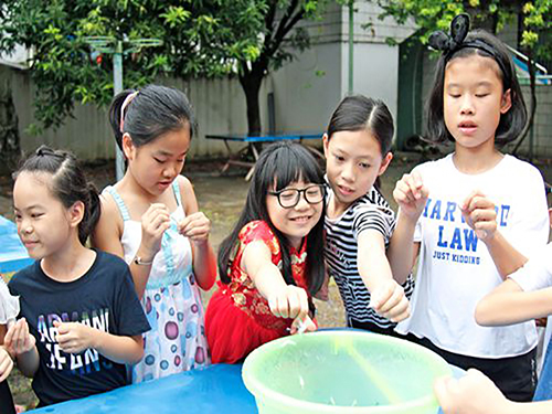 在进行着精彩课堂的同时,各队伍也举办了各式各样的活动。今日,CC服务队开展了“科技嘉年华活动”,WTO进行了“以二抵十”的活动,而LEO服务队则举办了“英文剧大赛”的活动。这些活动既体现了商英学院英语夏令营的英语特色,又体现了趣味性。其中,CC服务队的“科技嘉年华活动”,为低中高年级各设置了不同的活动项目,分别为“鸡蛋撞地球”、“肥皂小赛艇”、“水火箭”。这个活动使孩子们通过科学实践来培养他们的动手能力,使他们从中受到了锻炼,并激发了他们对科学的兴趣。