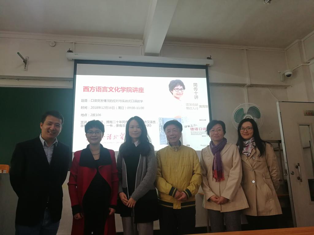 本网讯2018年12月16日上午九点,德国驻沪总领事馆资深高翻黄霄翎在二教106教室为西语学院带来了一场关于口译突发情况应对及危机管理的讲座。黄霄翎女士从业20余年,是中国首位获得德国外交部德汉同传资格证的中国译员;著有口译专著《译家之言——德语口译》和《同传十讲:资深高翻黄霄翎带你入行》。讲座由德语系系主任卢铭君教授主持,西语学院德语系青年教师、多个语种的研究生和高年级本科生参加了讲座。