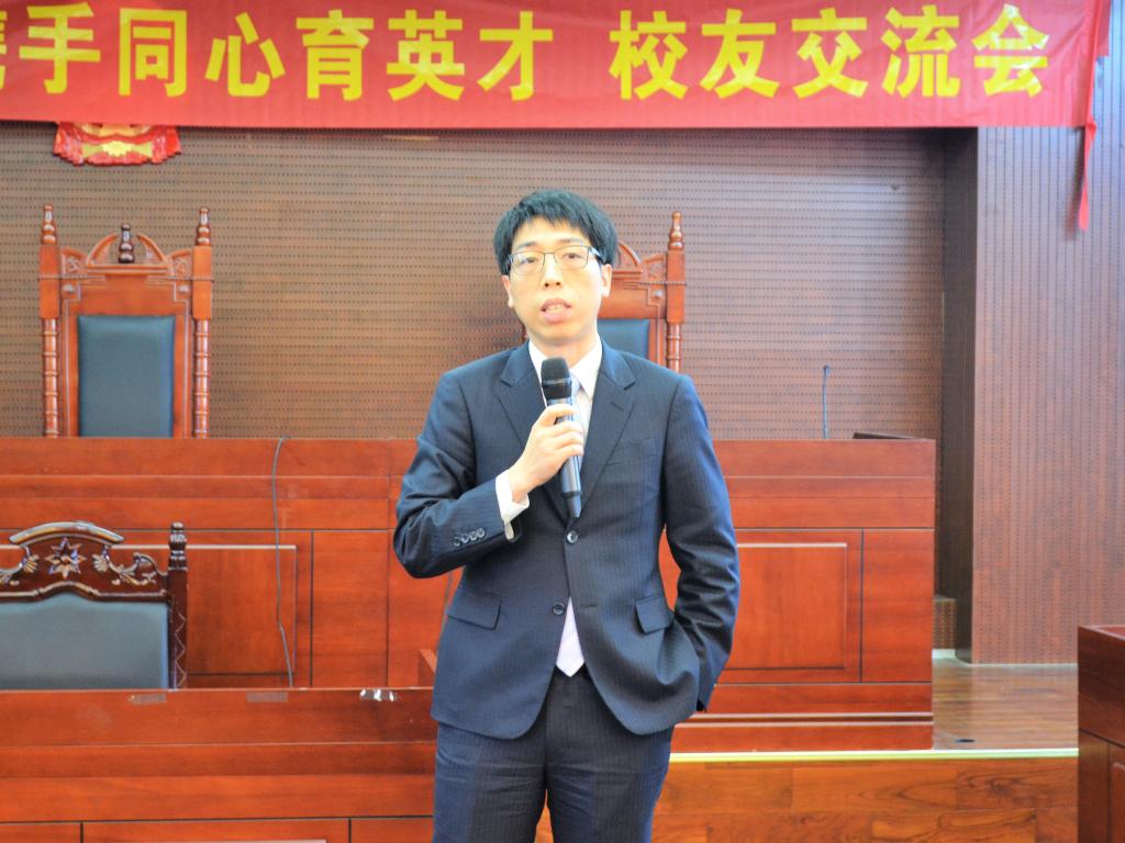 本网讯 11月22日下午,法学院灯塔工程·南粤青年说:“情系广外传薪火 携手同心育英才”校友交流会在实验楼B307第一模拟法庭顺利举行。莅临本次活动的嘉宾有1999级校友黄桂洪、1998级校友张由、2002级校友陶明阳及法学院党委副书记林茂辉、团委书记陈宇等法学院师生。在交流会上,三位优秀校友以其丰富的阅历为同学们分享了在思想上、学习上、工作上的经验,在理论与实践间构筑桥梁,为同学们未来的职业生涯规划指点迷津。
