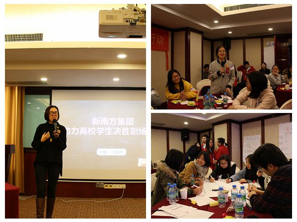 除了参观珠江广场之外,新南方集团总经理助理陈韵如为同学们开展了以“高校学生如何决胜职场行动”为主题的分享会。分享会上,同学们分组进行团队合作,就个体在不同阶段的成长所需要的内、外在条件进行热烈的讨论分析,并与不同的组别分享讨论成果;陈韵如还用简单易懂的方式向同学们介绍了企业、经营、管理三者的本质,并用柯达公司的衰败与华为集团的崛起告诉同学们长远眼光对一个处于成熟期的企业的重要性。