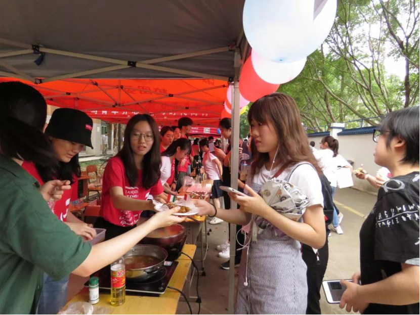 美食节开幕前各摊位工作人员们正忙着准备美食