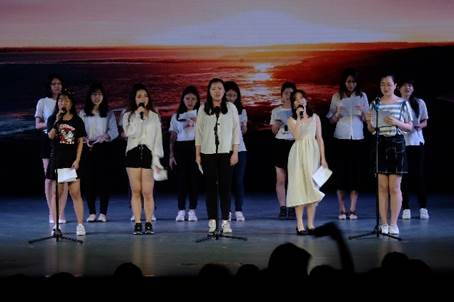 1509班周志海和武术协会联合带来的表演《沙场秋点兵》,将拳术、棍术、剑术与古风歌曲结合,不仅为观众带来了一场视听盛宴,还展现了英文学子“文能提笔安天下, 武能上马定乾坤”的豪情壮志。15级文学6班带来的歌曲《A million times》祝愿每一位英文学子都能“以梦为马,不负韶华。”