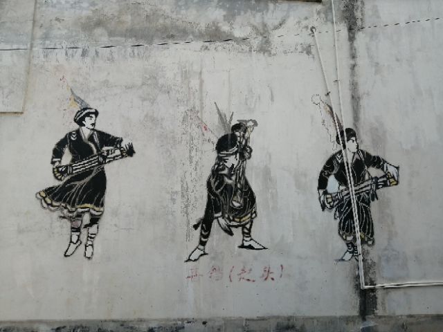 墙上是瑶族人民歌舞的绘画,十分具有特色。