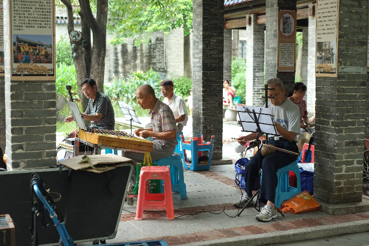 每天早晨,粤剧爱好者自发来到佛山祖庙给大家表演粤剧。这里的老人们说,一周有两次轮班,有些时候年轻人也会来这里进行粤剧表演。队长随机采访了正在认真听粤剧的阿姨。阿姨表示,祖庙每天都会有粤剧表演,“我喜欢粤剧,因为这是我们自己的文化精华,一定要传承下去。”值得庆幸的是,不仅是老年人,年轻人也会来到此地大展身手。在祖庙聆听或表演粤剧,仿佛成为了当地人生活中不可或缺的一部分。