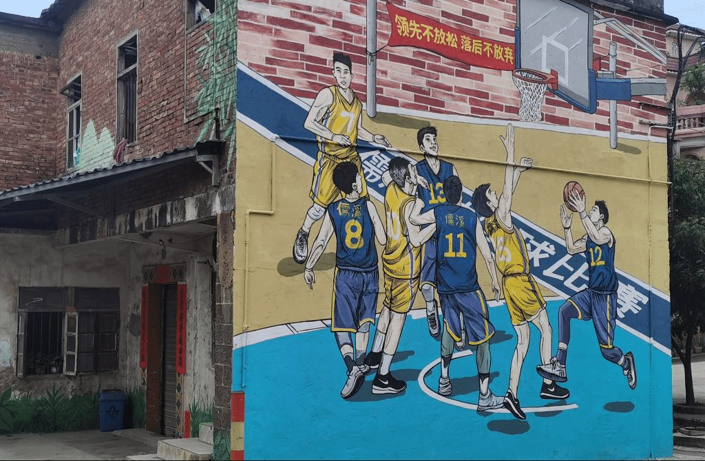 (儒溪村中儒溪篮球队比赛的壁画)