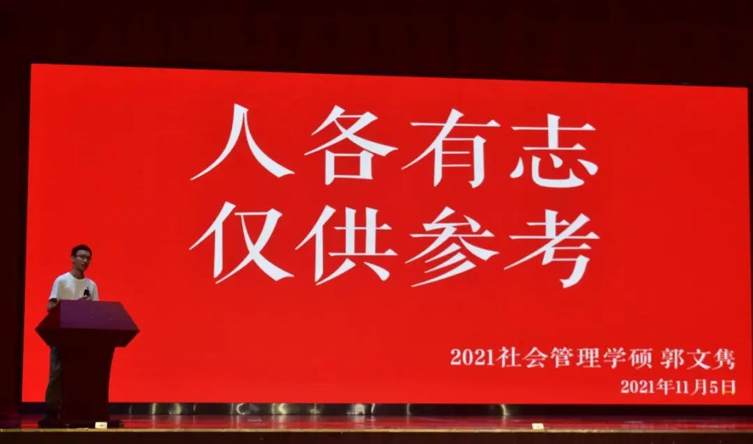 郭文隽以“人各有志”为主题进行了振奋人心的经验分享,通过自己的判断、取舍与执行三个步骤,向学生工作人员展示他作为学生骨干的真实经历与想法,更向在座的同学们们提出有关未来规划的建议。丁凯利提出“去留”、“得失”、“取舍”三个关键词来分析学生骨干在不同方面对个人的影响,并结合自身经历为同学们在不同阶段的选择指明了方向。吴心妍表示,只有做一名清新阳光的学生骨干,才能更好地践行“全心全意服务同学”的初心和使命,才能清爽明白地做好学生工作,并寄语各学生骨干要“尽我所能、爱我所爱”,以最大的热忱完成每一份团委工作。