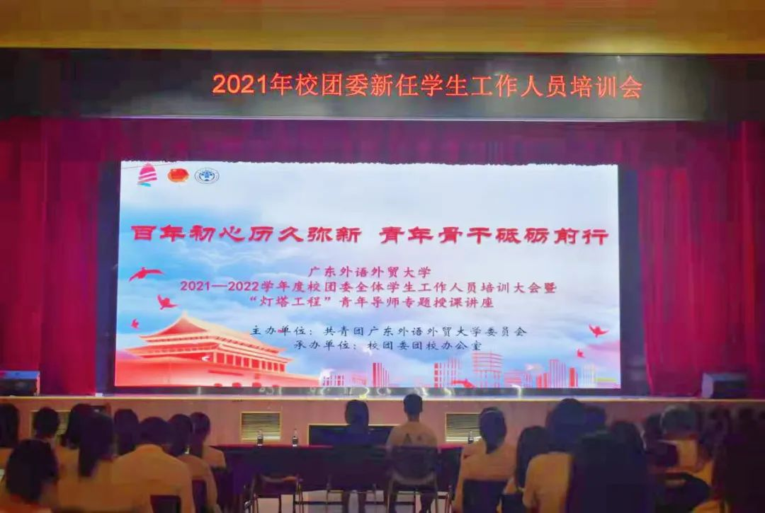 11月7日上午,我校团委2021-2022学年度全体学生工作人员培训大会暨“灯塔工程”青年导师专题授课在南北校区通过会场直播方式同步举行。校团委书记纪彬,校团委副书记涂颖、刘庆丹,校团委全体专职团干部及学生副书记,校团委各部门、校学生会全体成员500余人参加培训。