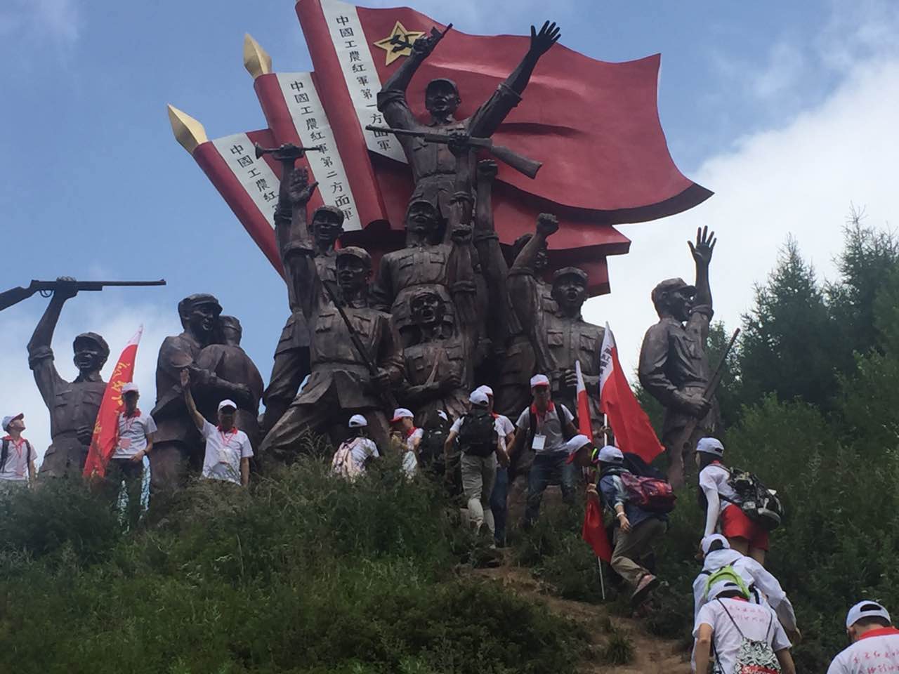 8月8日,我们在六盘山下沿着新修葺的红军小道拾级而上,2.5公里的小道是浓缩版的红军长征展示,以雕像及碑文形式重点展示了长征途中的重大战役和事件。虽然只是简单的走路,空气也清凉干爽,但还是让我们走得气喘吁吁、汗流浃背。最后到达山顶广场的时候,极目远眺,层峦叠嶂、郁郁葱葱,真切能够体会到伟大诗人毛泽东当年的豪情。