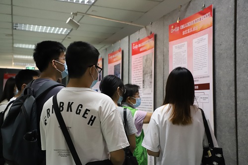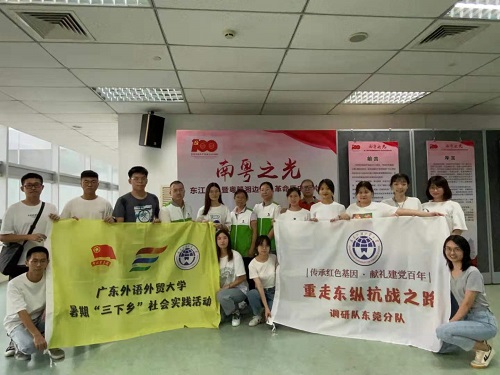 本网讯 8月25日,广东外语外贸大学“重走东纵抗战之路”实践调研队队员于东莞市图书馆参观“南粤之光——东江纵队暨粤赣湘边纵队革命历史”图片展,重温抗战历史,缅怀革命先烈,学习红色精神。
