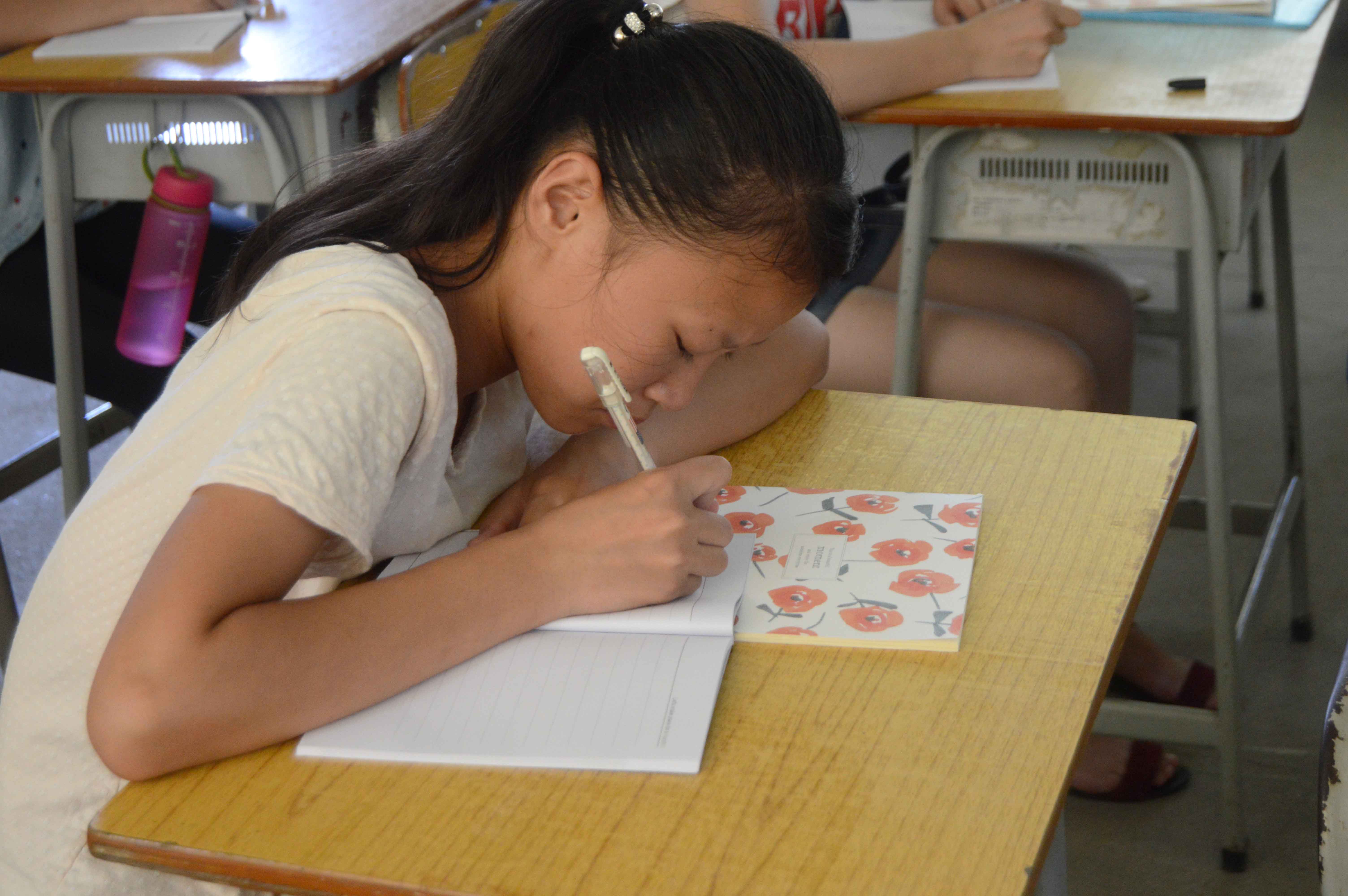 学生在认真地做笔记