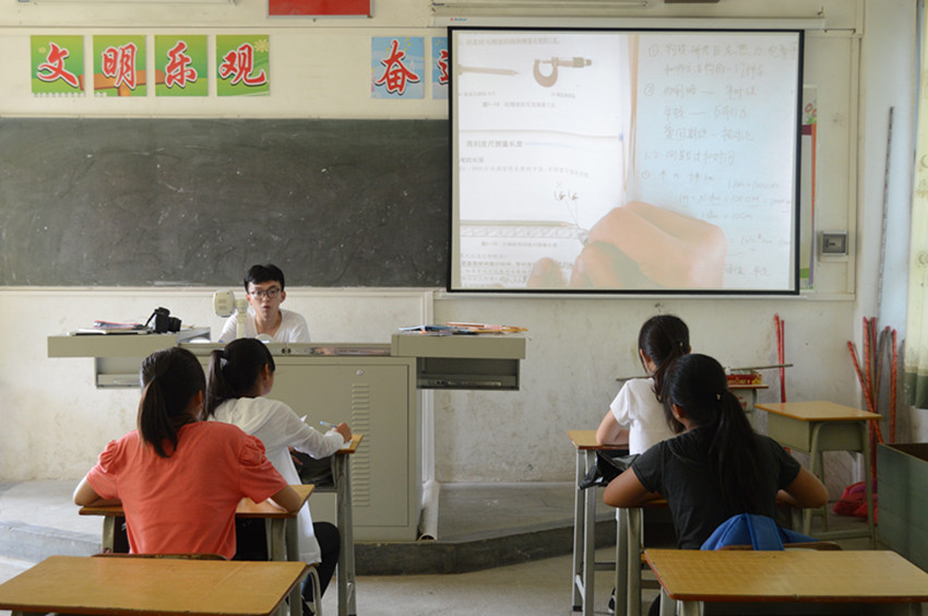 本网讯 2016年7月9日,是“夏蜩启明”服务队来到清远市阳山县岭背中学的第二天,也是三下乡队伍课程开始的第一天。前来的十二位同学对于今天的第一节课——英语音标单词课充满了期待。而我们的小老师们则是既紧张又兴奋,经过近一个月的准备与练习,我们的小老师们已经做好了一切准备,致力给同学们上好第一堂课。