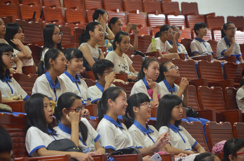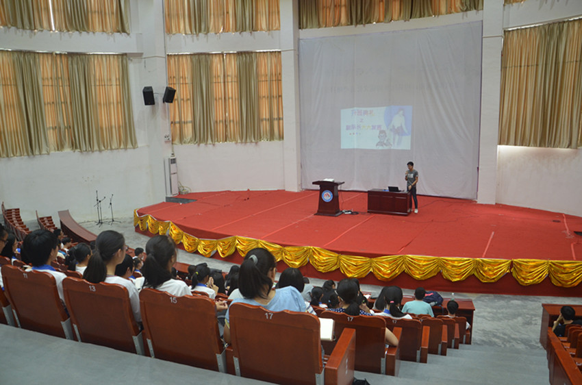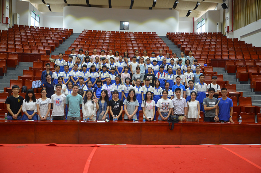 经过了5个小时的舟车劳顿,终于顺利到达梅县外国语学校的One for all的队员们,匆匆吃过午饭,来不及洗尽一路的浮尘与疲惫,就要准备开始与同学们的初次见面会。看到已在会场等待队员们75位可爱的学生们,队员们就把疲惫都抛到了九霄云外去了。