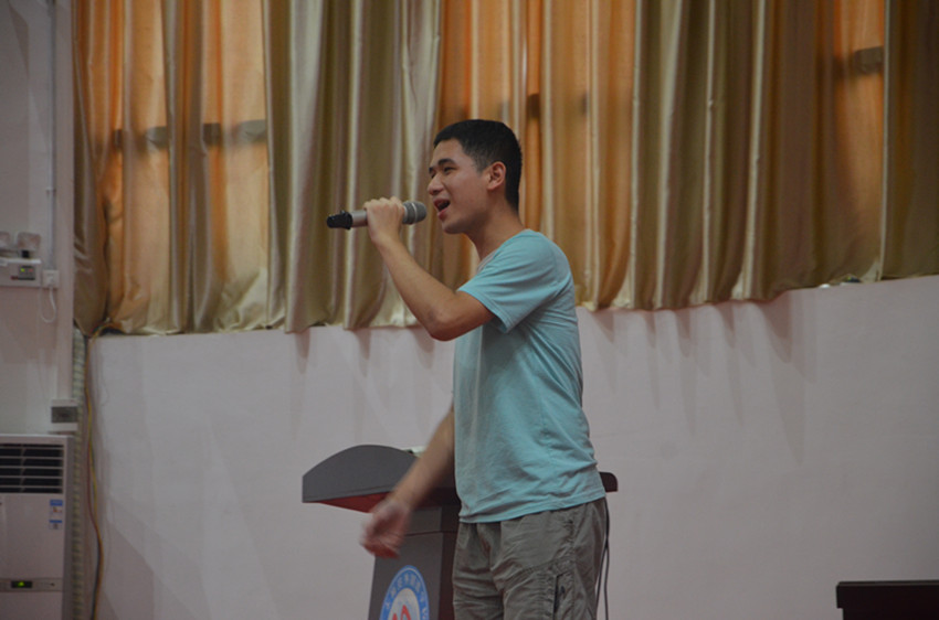 合唱过后,all forone的队长林泽惠,以及两位副队陈欣、李楠依次上台讲话,介绍了三下乡活动期间的具体课程,强调了活动期间师生的安全问题。