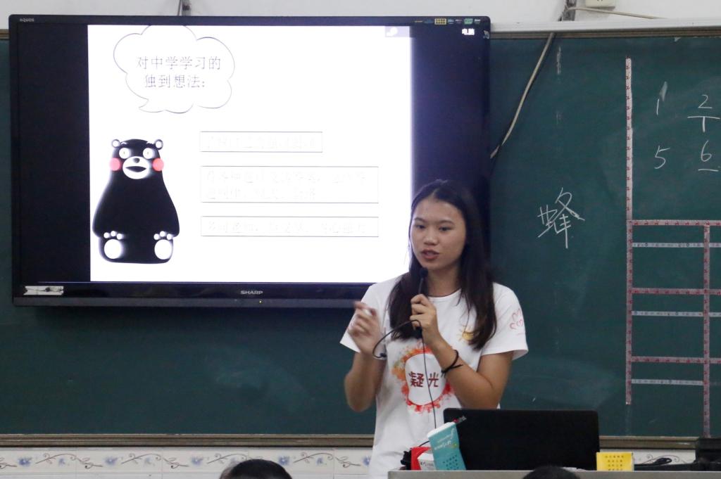 本网讯7月27日下午,广东外语外贸大学法学院Care志愿者协会“凝光”三下乡服务队在英德华粤中英文学校凝光一班举行了经验分享会。六位“凝光”队员从自身经历中总结经验,将经验分享给学生,并与学生们进行了交流与探讨。