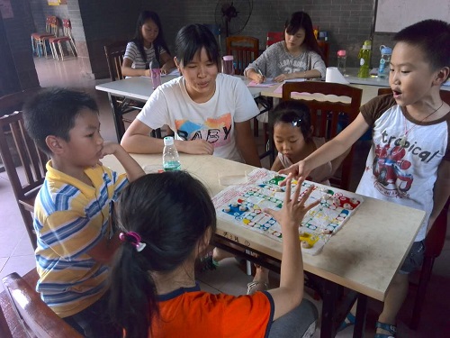 下午,提前来的小朋友,趁着上课前一段时间,围在一起玩起桌游。一边,是彼此之间比较熟稔的几个小女孩在玩跳棋,另一边,是两个小男孩和小妹妹在玩飞行棋。“剪刀石头布,剪刀石头布······”赢的呼声四起,输的笑看着对方走棋,没有一丝不开心与生气。孩子们童真简单的世界,充满着欢声笑语。