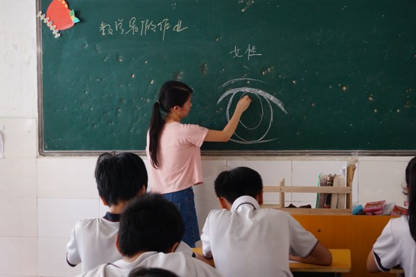 义教队员在为小朋友们上美术课