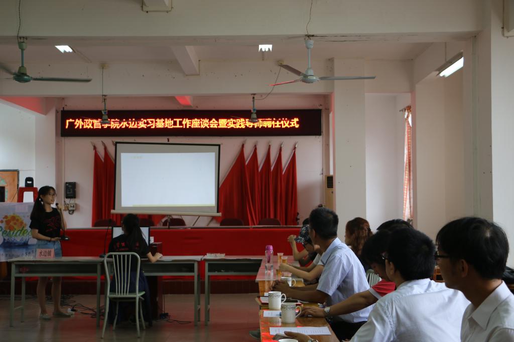 然后,学院领导向水边镇党委书记肖贞响授予校外导师的荣誉称号,肖书记表示,自己很荣幸终于成为广外的一员。