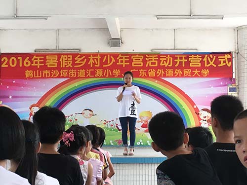 随后,到了队长发言的环节,为了让小朋友们能够以一种轻松愉悦的心态来参加我们的开幕式,队长在发言稿上也是费煞苦心。她用轻松幽默的语言马上带动了全场的气氛,并向同学们介绍了我们三下乡的各个队伍的构成,让同学们更好了了解到即将和他们成为好朋友的我们。