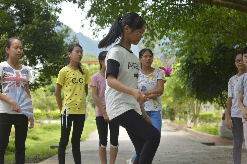 学生在踢毽子