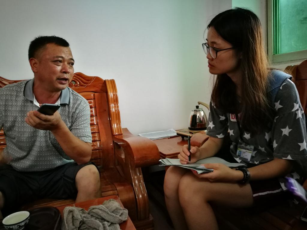 受黄色暴雨警告的阻碍,早已装备完毕的调查组不得不延迟出行时间,直到下午3点左右才可以出发。下午,调研组去的地方是在基地隔壁的坪石镇上古老的村落之一的莲塘村。调研组分成了两个小组,分头进行采访和发放调查问卷。一开始,他们很幸运地遇到一位十分认真填写问卷的大哥,他每填写一道题目,都会一字一句的认真看完,仔细斟酌之后才写下答案,这让组员们感受到了当地村民的对待事物的认真,也让他们有信心能收集到更多更真实更详细的调研资料。