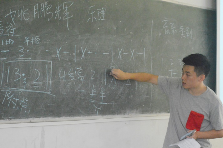 音乐课是义教组的老师们一直想上却无从下手的课程,毕竟这门课的教授难度是非常高的,然而学生们却非常期待。在大家一筹莫展之际,队长犹如神兵天降一般,主动负责音乐课的教学。看着队长坚毅的眼神,队员们不约而同地鼓起了掌。队长为授课做了充足的准备,果然是“有金刚钻才敢揽瓷器活”,简谱、五线谱、节拍、音调,娓娓道来;布鲁斯蓝调、爵士乐、嘻哈摇滚,样样精通。孩子们被音乐的力量深深吸引,有位小朋友甚至在座位上手舞足蹈。队长欣慰地点了点头,离开了课室,拂袖红尘中,深藏功与名。