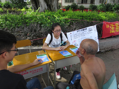 九时许,司法所工作人员到达,队员们向司法所工作人员咨询了通衢镇法律问题主要是集中在哪一方面以及现状如何。根据司法所工作人员所说,主要的法律问题还是在土地问题上。目前,龙川高速公路征地导致居民的土地问题加重,居民间的矛盾较大而居民本身也对此也十分敏感。队员们与司法所工作人员合作解答镇民的法律困惑,主要集中在土地、债务等的问题,队员们解答起来不见生疏,可见做足了准备。