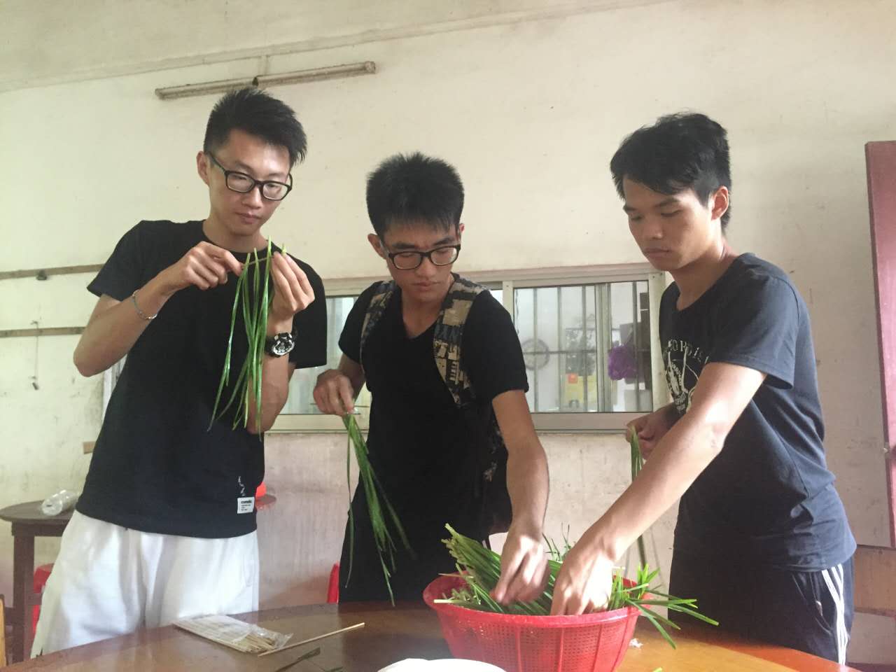 男生们在准备烧烤的材料