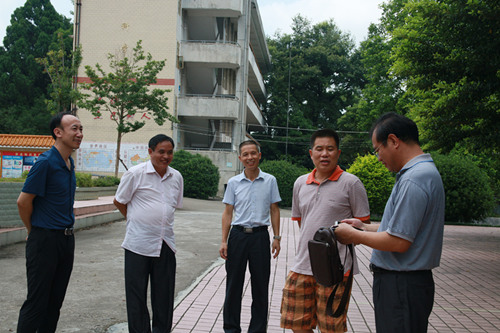 本网讯2016年7月14日,商学院“夏梦·乡行”三下乡服务活动将近开展一半,届时,每个组的队员们都已经积极投入到自己的工作之中,为了义教活动的进行而时刻准备着。而就在今天中午,纵然烈日炎炎,商学院党委书记罗海洋、辅导员尚丹、刘富先、杨柳、杨欣等学校领导驻足长来镇中学,来慰问三下乡队员们的近况,表示了对队员们的密切关心和高度重视。