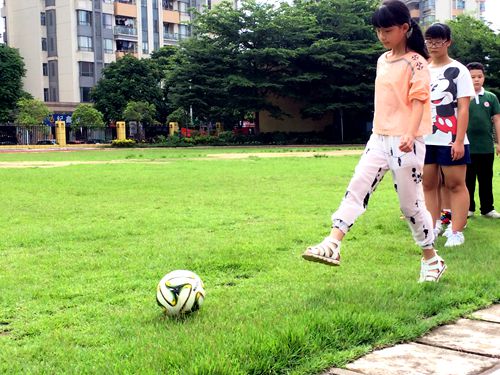 学生们在上足球课