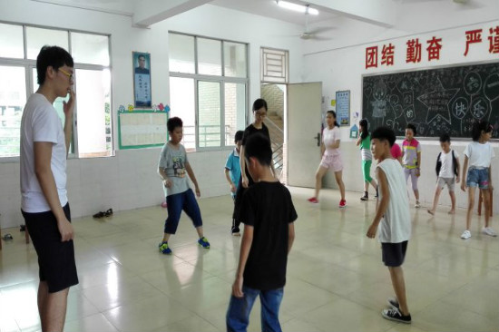 下午晴空高照,阳光甚好。教学组的小老师开始上舞蹈课了。队员组织低年级小朋友们进行了“斗舞”,小朋友们笨拙的舞步是那么的可爱。斗舞结束,老师开始教授新的舞步,小朋友们认真盯着老师的舞步,自己也跟着模仿。认真学习舞蹈姿势的小朋友们也得到了老师的夸奖。而高年级同学则由老师带领进行趣味活动——谁是卧底。大家欢声笑语,气氛十分融洽。经过了下午的趣味活动,小老师和学生们的感情也变得更深厚了。