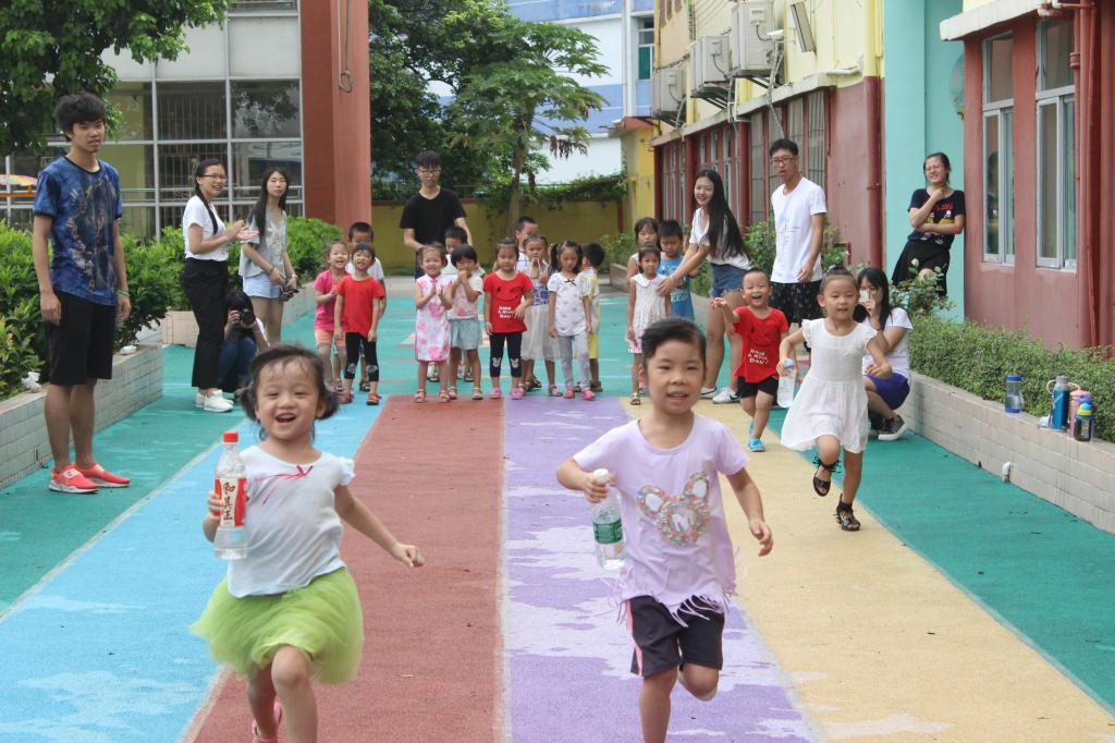 本网讯2016年7月20号早上,外交学社“火种”三下乡服务队在东莞塘厦米奇幼儿园的操场组织了一场趣味运动会,带小朋友们体会运动的快乐。