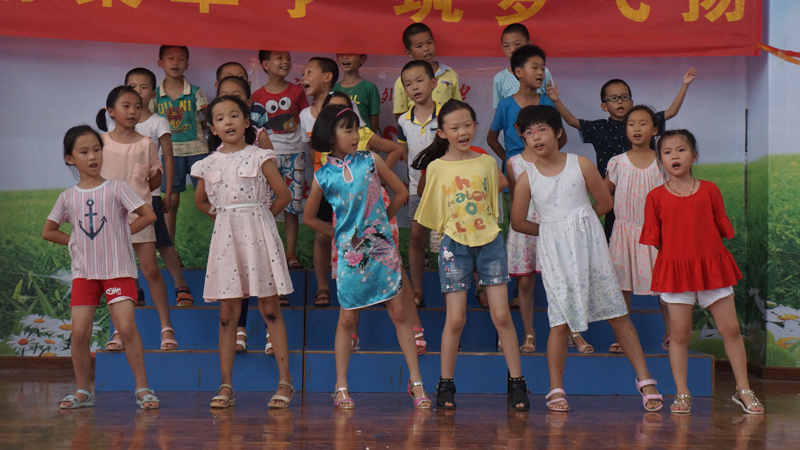 下午,闭幕式彩排开始,同学们在台上的表现令人欣慰。走秀、戏剧、歌唱与舞蹈,节目类型多还有英文歌曲演唱。你左手我右手、你哼歌我附和,和平常上课的吵闹形成了鲜明的对比。在小朋友的表演结束后,义教组的队员们也表演了《同桌的你》的改编歌曲——《义教的你》。其中在演唱到“你总问老师你在哪里,转眼要离开远去”时,两个二年级的小女孩哭了起来,泪眼与哭声,此时无言胜有言,12天的师生情,时间不长、情更远。